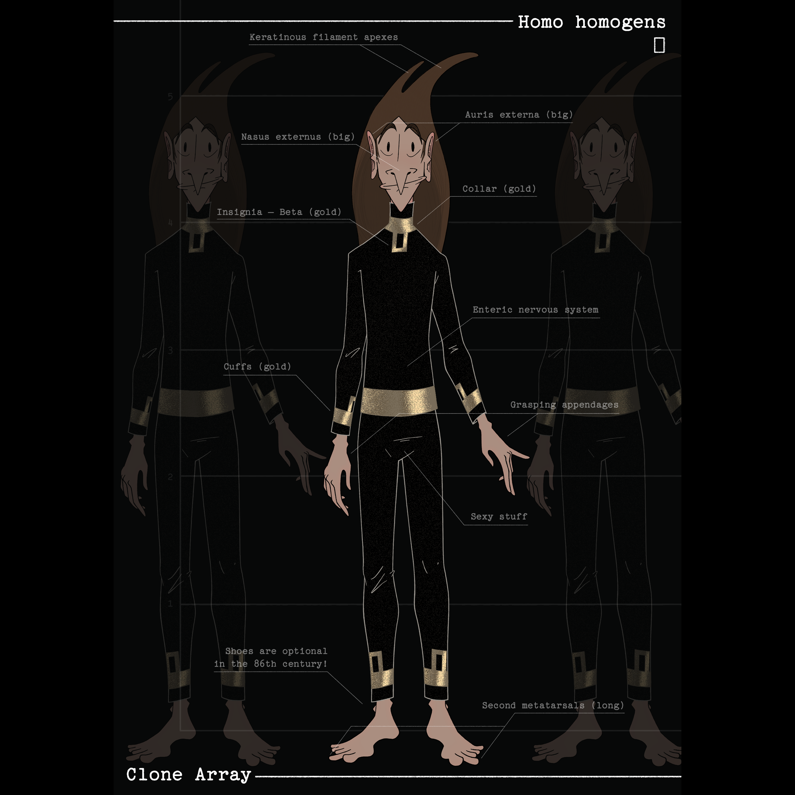 With the Milky Way colonized and dark matter travel well established, a race of clones has been created to run humanity's galactic travel & communications Array, consisting of stations that direct radio and space traffic through astrophysically drifting Dark Matter Tunnels. This is boring, so many clones turn their stations into talk radio shows! With humans on the brink of overpopulation, a team of clones has been sent to the first ever Andromeda station to begin preparations for colonization, with their first assignment being sorting incoming Milky Way radio traffic for future dispersal throughout our galactic neighbor. But WE aren't interested in that! Clone Array follows one clone who's become stranded at the halfway point between the two galaxies, stuck in a tiny Egg Ship in the vast nothingness of intergalactic space with only an AI as company… And the entirety of the Array's transmissions.